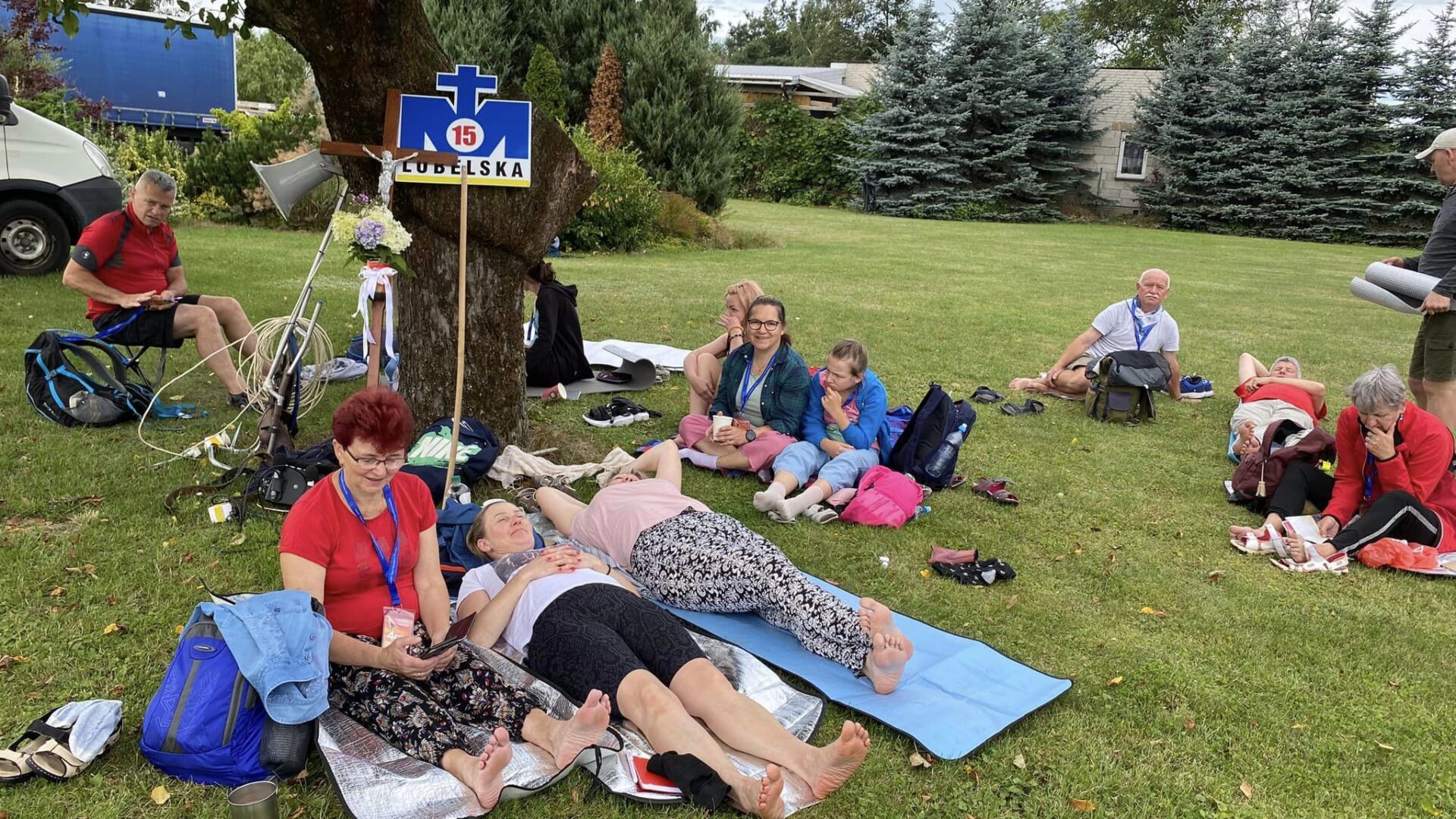 Poranek dla lubelskich pielgrzymów okazał się łaskawy, nie padało, a pogoda sprzyjała wędrówce. Pierwsza noc, nawet po przebyciu ponad 20 km nie zawsze jest w pełni przespana, ale pątnicy nie tracą ani wiary ani sił. Już na pierwszym odpoczynku mogli liczyć na poczęstunek mieszkańców. Otwartość serc ludzi, którzy goszczą pielgrzymów jest wielka i wciąż zaskakuje. Obiad kolumny I i II miały w Chodlu po Mszy św., natomiast kolumna III na dłuższy odpoczynek zatrzymała się w Poniatowej. Stąd wyruszyli już dalej, by pokonać kolejne kilometry w stronę Urzędowa i Opola Lubelskiego.