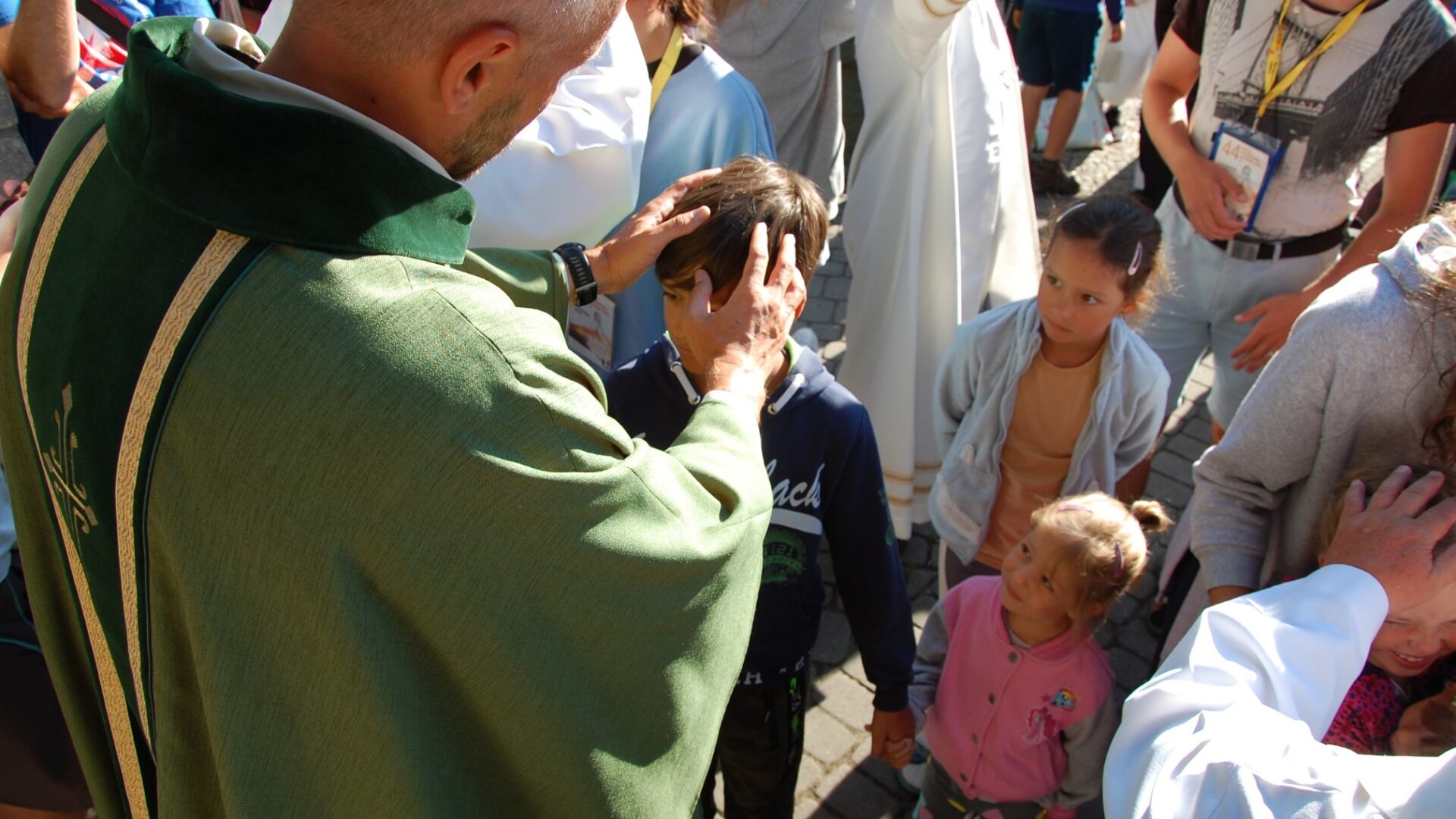 Po Mszy św. wszystkie dzieci otrzymały indywidualne błogosławieństwo. Co roku na szlaku jest kilkudziesięciu bardzo młodych pątników, którzy często w wózku przemierzają pątniczy szlak.